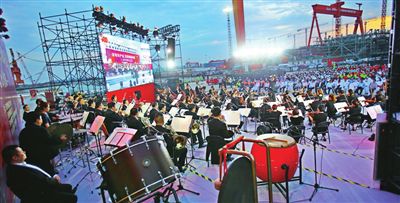 上圖 天津交響樂團(tuán)“紅色文藝輕騎兵”小分隊(duì)在天津港演出。 記者 姚文生 攝(本報(bào)資料圖片)