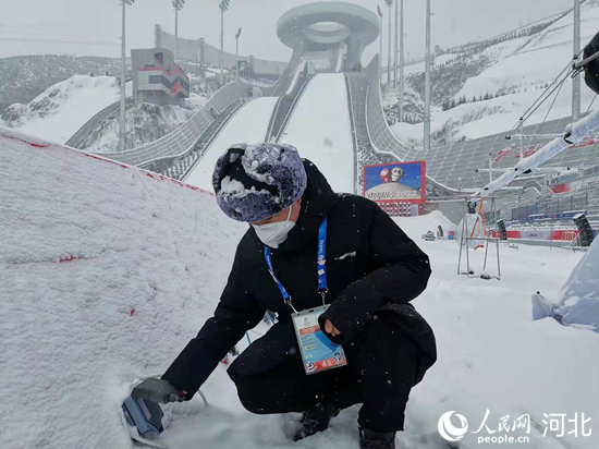 國家跳臺滑雪中心電力保障團隊在賽事后檢查用電設(shè)備。 韓寶喜攝