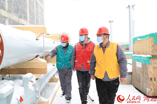 雄東500千伏變電站工程復(fù)工前項(xiàng)目管理人員對(duì)GIS設(shè)備存放區(qū)進(jìn)行檢查。 王海軍攝