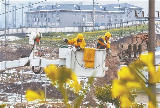 2月24日,田間地頭的白雪尚未融化,油菜花卻已悄然開放。國家電網洪江市供電公司工作人員在黔城鎮(zhèn)雙溪社區(qū)對10千伏巖垅線016號桿帶電解除引流線,確保線路正常供電。 胡浩 攝