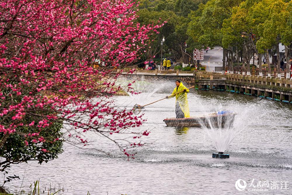 盡管天空飄著細雨,舟山普陀山司基畈河上,河道保潔員仍在辛勤工作著,打撈水面漂浮物,保護水生態(tài)環(huán)境……守護一汪碧綠的清水,已成為普陀山人的習(xí)慣。