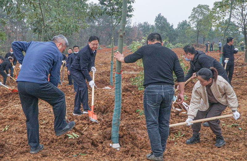 2月28日上午,湖北省應城市 “四大家”領導,來到有名店林場義務植樹示范基地,參加互聯(lián)網(wǎng)+全民義務植樹活動。他們通過互聯(lián)網(wǎng)+全民義務植樹小程序認領黃梨木、金絲楠、野黃桂等名貴苗木1000多株。在該市,網(wǎng)民可通過互聯(lián)網(wǎng)平臺程序,自愿以捐資代勞或投工投勞等形式,通過線上、線下雙途徑負責一定數(shù)量的樹木種植、管護。該市有名店、團山、伍山、燒香臺、草山、老觀湖等8處義務植樹基地,供網(wǎng)民選擇認養(yǎng)認領。(圖/文 鄭毅、馬友忠)