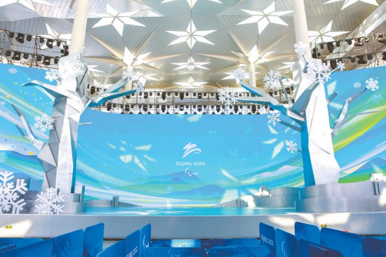 延慶冬殘奧頒獎(jiǎng)廣場(chǎng)“雪晶宮”光彩奪目。