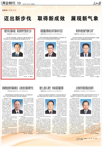 人民日報丨吳政隆代表:穩(wěn)住農(nóng)業(yè)基本盤 建設新時代魚米之鄉(xiāng)