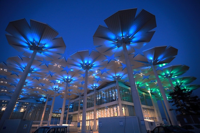 延慶冬殘奧頒獎廣場前花傘被點亮。張慶玉攝