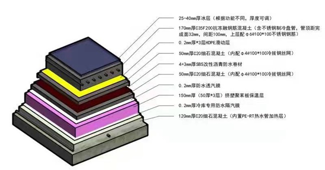 混凝土冰板層這道工序尤為重要,施工也最為艱苦。對李燕敏來說,冰板構(gòu)造施工就如同制作“千層糕”:從下向上鋪設(shè)加熱層、防潮隔汽層、保溫層、隔離層、防水層、混凝土冰板層……55厘米厚的混凝土整整有9層,整個地面平整度要達(dá)到設(shè)計(jì)要求的精度,每個環(huán)節(jié)不容有絲毫閃失。