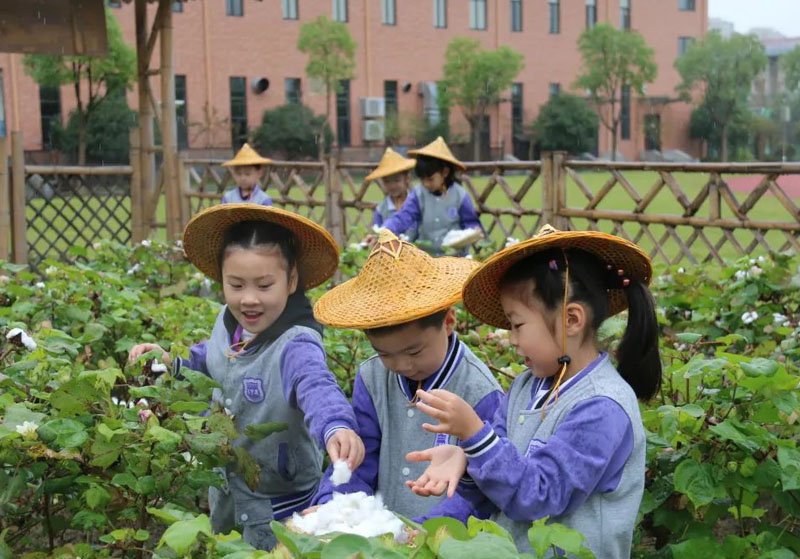 正值課后服務(wù)時間,奉賢區(qū)育賢小學(xué)的“樂耕園”里,迎來了一群可愛的小朋友。他們有的興致勃勃地觀察植物,有的正給菜地除草,好一派熱鬧景象?!白詈玫膭趧咏逃褪且尯⒆尤趧?。”學(xué)校根據(jù)農(nóng)作物的生長周期,精心設(shè)計(jì)季節(jié)性內(nèi)容,并邀請有種植經(jīng)驗(yàn)的家長參與其中,營造課后服務(wù)中親子互動的空間。如何才能讓水稻長得更好,如何讓棉花長得又大又白,讓向日葵一直露著笑臉?孩子們和家長共同探究這些問題。學(xué)校將勞動教育作為主要抓手,以課后服務(wù)為載體,進(jìn)行德智體美勞“五育融合”,打開了課后服務(wù)的新天地。