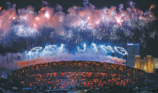 北京冬殘奧會閉幕式上,伴隨著場館內的節(jié)目表演,絢爛的焰火在國家體育場鳥巢上空綻放,北京的夜空中出現了“BEIJING”和“北京2022”的煙花字樣,燦爛焰火將溫暖與希望傳遞給全世界。