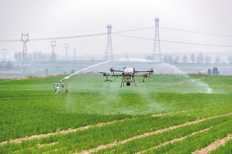 3月21日,在運城市夏縣胡張鄉(xiāng)新晉村有機旱作小麥基地,當(dāng)?shù)剞r(nóng)民利用植保無人機為麥田施肥。眼下正值春耕春管的關(guān)鍵期,夏縣糧農(nóng)搶抓有利農(nóng)時,對全縣31.6萬畝冬小麥開展病蟲草害和極端天氣的應(yīng)對防范,及早動手澆水、施肥、噴藥,全面開展春季麥田管理,提高畝產(chǎn)效益,為全年糧食豐收打下堅實基礎(chǔ)。(閆鑫攝)