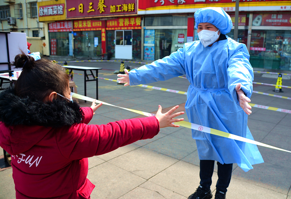“我要媽媽......”3月16日上午11點(diǎn),在江蘇連云港市連云區(qū)墟溝街道東園社區(qū)步行街核酸檢測(cè)點(diǎn),一個(gè)8歲的小女孩張開雙手,哭喊著要媽媽。一旁身著防護(hù)服的母親卻連連后退,背過(guò)身悄悄擦去淚水。視頻中的這位母親,是墟溝街道民政辦辦事員孫麗群。