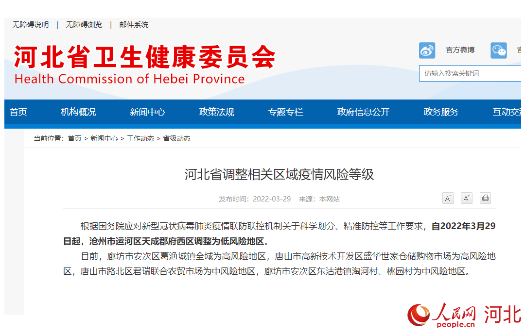 河北省調(diào)整相關(guān)區(qū)域疫情風險等級