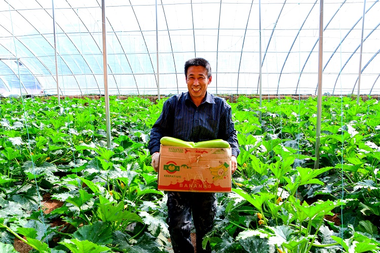 掀開大棚門簾,熱氣撲面而來。眼前,一壟壟西葫蘆藤蔓郁郁蔥蔥,金黃色花朵上結(jié)出一個(gè)個(gè)西葫蘆,瓜條順直、鮮嫩翠綠。大棚負(fù)責(zé)人任國(guó)喜樂呵呵地說:“這里建成后一刻也沒閑置,及時(shí)種上西葫蘆、西紅柿。眼下第一批西葫蘆已經(jīng)上市,價(jià)格不錯(cuò)。等到生長(zhǎng)旺季,畝產(chǎn)5000斤不成問題。”