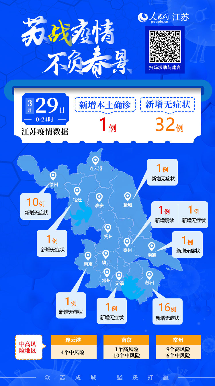 3月29日江蘇新增本土確診病例1例 本土無(wú)癥狀感染者32例