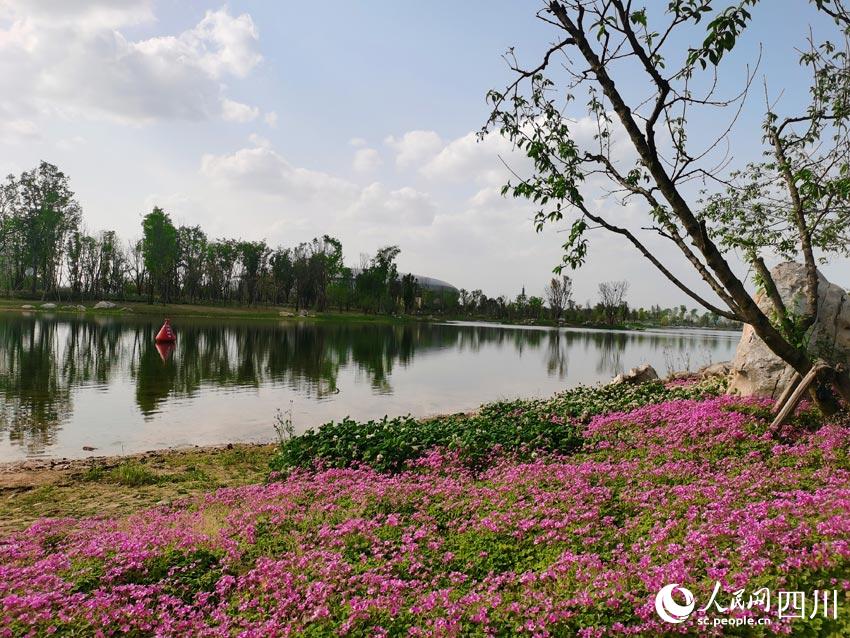 龍泉山脈綿亙遠(yuǎn)方,東安湖水蕩漾眼底,體育場館巍峨半空,花草樹木各展春姿。在湖光山色之間,有大量市民前來踏青賞春,順便欣賞著大運(yùn)會(huì)場館和火炬塔的風(fēng)采。