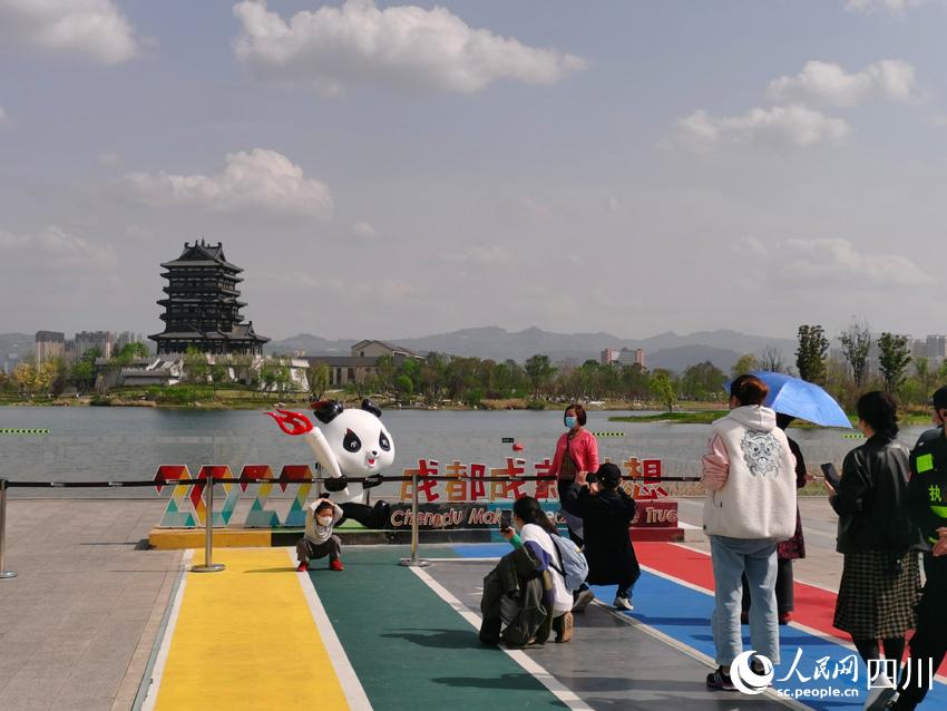 “2022,成都成就夢想!”一個(gè)大熊貓手持大運(yùn)會(huì)火炬的雕塑造型旁,寫著這句話,吸引了不少游人在這里打卡拍照。2022年,成都成就的不只是大運(yùn)會(huì)運(yùn)動(dòng)員們的夢想,還有更多熱愛生活、熱愛體育的人的夢想。
