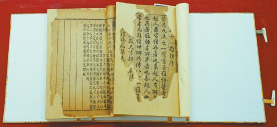 修復(fù)《文心雕龍》,由于該書天頭、地腳太窄,袁東玨采用的是古籍修復(fù)里一種非常復(fù)雜、難度較高的方法——“金鑲玉”。簡單來說是將書葉四邊都襯大于書葉的宣紙,余出的部分再襯一層宣紙,書捻連綴原書葉和襯紙,再裝訂。由于古籍書葉多呈黃色,所以為“金”,宣紙白色為“玉”,因此叫“金鑲玉”。這樣處理,可使古籍美觀大方,還可避免讀者翻閱時碰到書心,延長古籍的使用壽命。