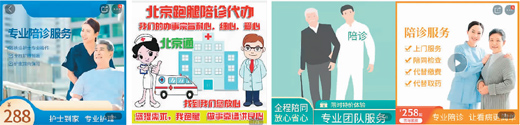 圖為淘寶、京東等電商平臺提供陪診服務(wù)的店家截圖。