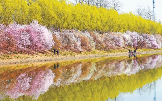 清明假期,在朝陽(yáng)區(qū)壩河兩岸,翠柳拂堤,岸邊綻放的花朵如彩云般鋪陳開(kāi)來(lái),映在碧波中,描繪出一幅春的畫(huà)卷。市民們踏青賞花,享受愜意的假日時(shí)光。本報(bào)記者方非攝