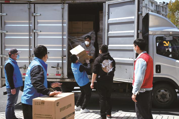 4月6日,在嘉興南湖區(qū)東柵街道雙溪社區(qū),愛心企業(yè)在嘉興團市委的統(tǒng)籌下,將一批牛奶等愛心物資送到抗疫一線。當(dāng)天,該愛心企業(yè)將1200箱牛奶分別送至嘉興南湖區(qū)、秀洲區(qū)、經(jīng)開區(qū)、桐鄉(xiāng)市和海寧市的“疫”線志愿者手中,為他們送去溫暖。(王振宇)