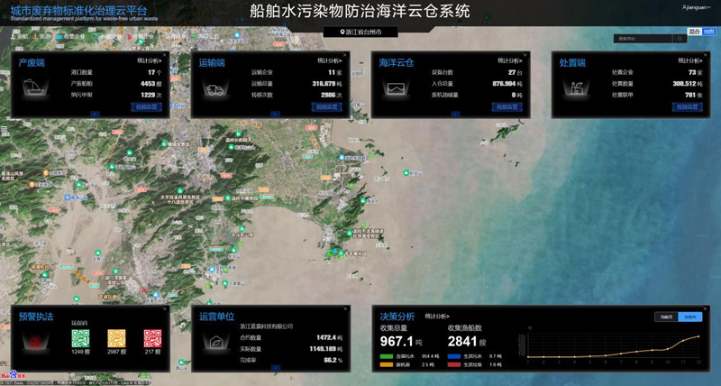 海洋云倉(cāng)系統(tǒng)是在臺(tái)州中心漁港設(shè)立的船舶污染物集中預(yù)處理中心,可分類(lèi)回收含油污染物、生活污水、廢鉛酸電池、生活垃圾等海域污染物。海洋云倉(cāng)系統(tǒng)通過(guò)5G網(wǎng)絡(luò)接入云端,將收集的數(shù)據(jù)進(jìn)行實(shí)時(shí)回傳,同時(shí)部署VR相機(jī),利用5G大帶寬特性,監(jiān)控中心可實(shí)時(shí)掌握海洋云倉(cāng)系統(tǒng)運(yùn)轉(zhuǎn)情況。漁民只要在“浙里辦”手機(jī)端發(fā)起污染物上交申請(qǐng),系統(tǒng)就會(huì)就近派單,通知專(zhuān)業(yè)船舶上門(mén)收集。海洋云倉(cāng)在收集到一定量級(jí)后,會(huì)通知有專(zhuān)業(yè)資質(zhì)的運(yùn)輸車(chē),把廢油運(yùn)輸?shù)接袑?zhuān)業(yè)處置能力的公司處置或者再生利用,減少后期運(yùn)輸和處置成本。