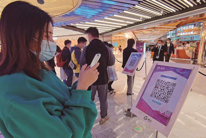 南京市民掃“場所碼”進入購物中心