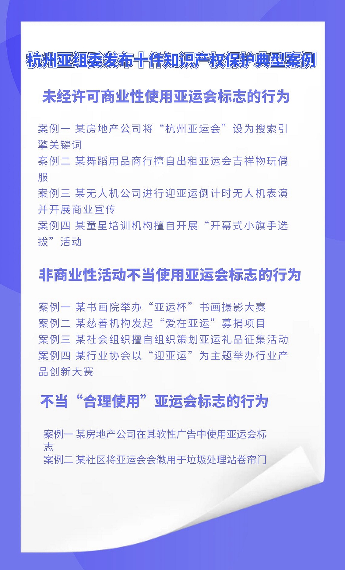 杭州亞組委發(fā)布十件知識產(chǎn)權(quán)保護(hù)典型案例。張麗瑋制圖