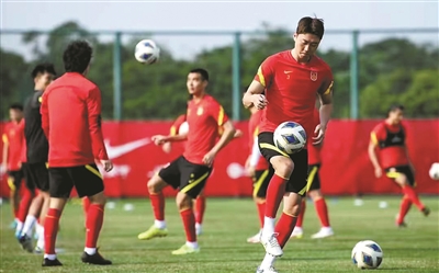 自迪拜杯國際足球錦標(biāo)賽戰(zhàn)罷,U23國家隊就一直在海口進行隔離備戰(zhàn)。本場比賽中,除了從國家隊前來馳援的張玉寧、張琳芃和吳曦三名超齡球員外。另外兩名適齡球員朱辰杰和戴偉浚也終于得以與全隊一起進行比賽。