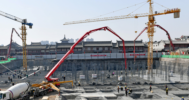 4月10日,大同古城戶部角綜合文旅項(xiàng)目工地上,機(jī)器轟鳴。大同市統(tǒng)籌經(jīng)濟(jì)社會(huì)發(fā)展和疫情防控工作,在落實(shí)各項(xiàng)防疫措施的同時(shí),復(fù)工復(fù)產(chǎn)也在緊張進(jìn)行中。李冬賓 攝