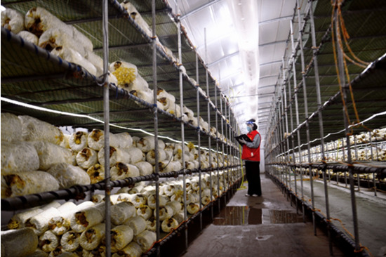 邯鄲市廣平縣十里鋪鎮(zhèn)陳固村農(nóng)事代辦志愿者走進(jìn)陳固村菌菇大棚,查看菌菇長(zhǎng)勢(shì)。武小凱攝