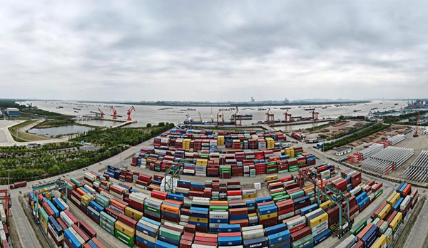 揚(yáng)州:長江沿岸港口作業(yè)忙