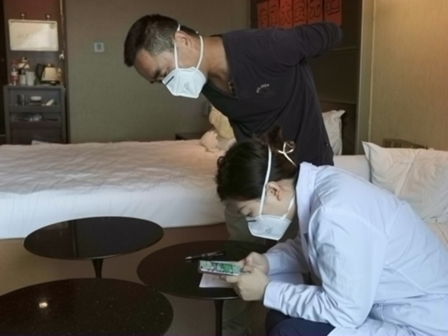 5月4日晚6點多,從香港求醫(yī)歸來的張氏夫婦懷抱著精神萎靡的哼哼,由機場大巴閉環(huán)轉(zhuǎn)運至海淀區(qū)紅杉集中醫(yī)學(xué)隔離觀察點,晚上8點半,到達(dá)酒店辦理入住。來自四季青醫(yī)院的張龍珍負(fù)責(zé)接待工作,豐富的工作經(jīng)驗讓她第一時間注意到了被母親抱在懷中的哼哼,臉有一些不正常的浮腫,便上前詢問情況,得知他患有神經(jīng)母細(xì)胞瘤并轉(zhuǎn)移至腦部及全身時,張龍珍便親自照顧起了這一家人,一步一步指導(dǎo)哼哼爸爸掃碼,填寫個人信息,并在前臺開放綠色通道,快速為他們辦理入住。