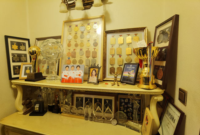 徐夢桃家中擺滿了她的獎(jiǎng)牌。胡婧怡攝