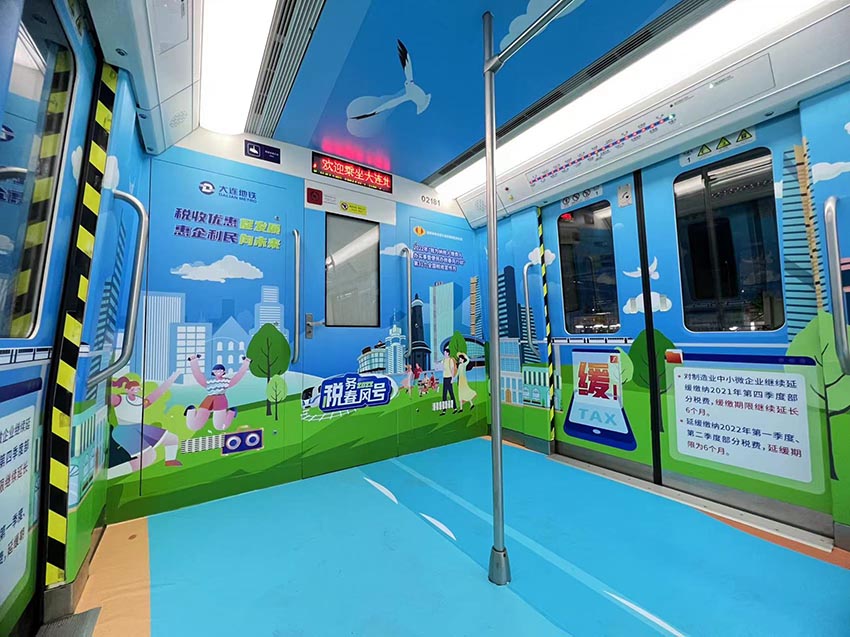“稅務部門用減、緩、退、延分門別類概括了新的組合式稅費支持政策,同時,又將最重要的優(yōu)惠政策內(nèi)容以圖文并貌的形式印刷在車上,一趟地鐵出行,就清清楚楚學懂了最新的組合式稅費支持政策,真的是不虛此行,為稅務局接地氣的宣傳方式點贊!”近日,在“稅務春風號”主題地鐵專列上,做財務工作的大連市民吳先生由衷感慨道。