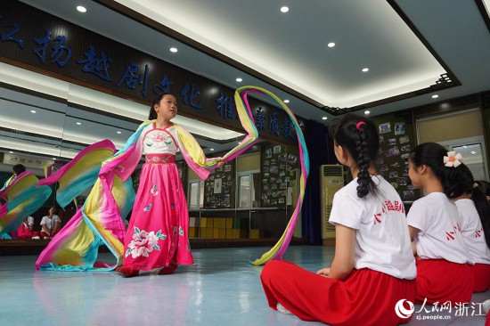 如今,嵊州市已逐步探索出了一條從幼兒園到小學(xué)的越劇特色教育新路子,許多學(xué)校班班有越劇,人人會(huì)唱戲。