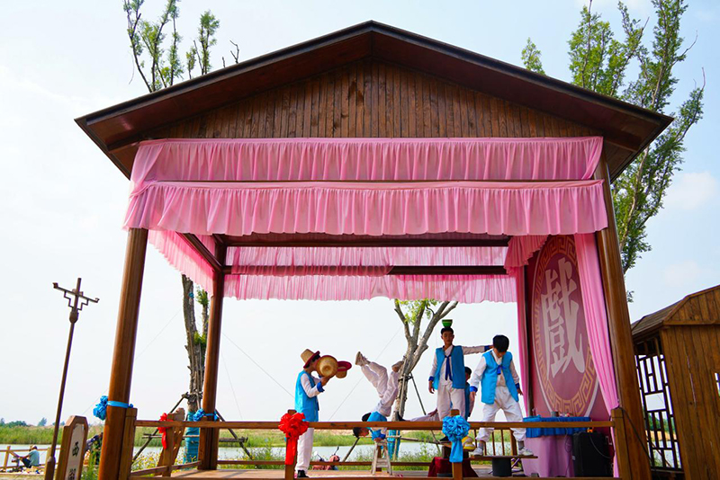 景區(qū)內(nèi)一處戲臺(tái)上正進(jìn)行表演。李歡攝
