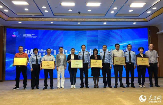 活動現(xiàn)場六家化妝品生產(chǎn)經(jīng)營企業(yè)獲評“誠信自律單位”。人民網(wǎng) 吳舟攝