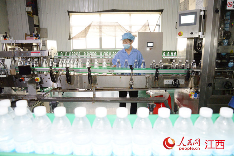 近日,工人在位于江西南豐縣傅坊鄉(xiāng)田陀村的江西巖縫泉農產品有限公司生產車間工作,趕制訂單產品。袁智攝