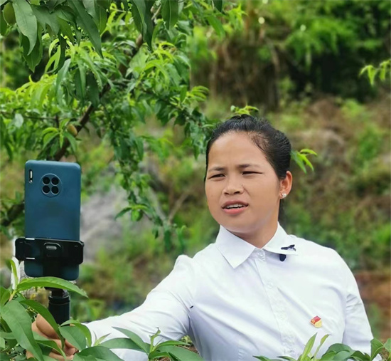 正向網(wǎng)友推介家鄉(xiāng)黃桃的唐云云。受訪者供圖