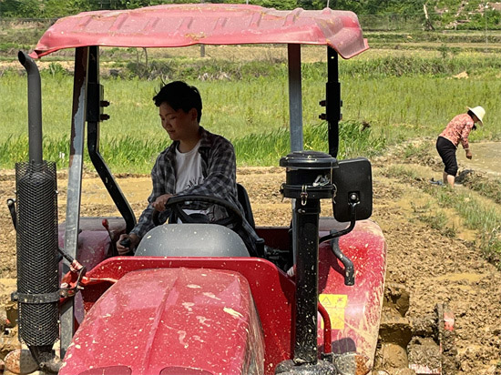 駕駛農(nóng)機為村民耕田的曾曉瑤。受訪者供圖