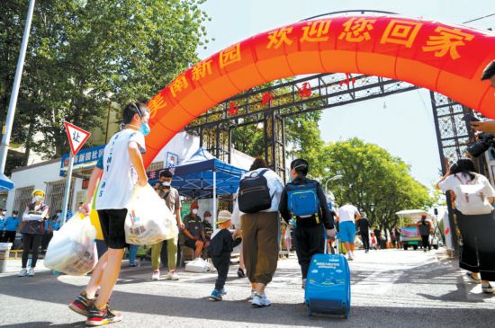 28日,朝陽(yáng)區(qū)南新園小區(qū)近5000名居民結(jié)束集中隔離后開(kāi)始陸續(xù)分批回家。 本報(bào)記者 程功攝