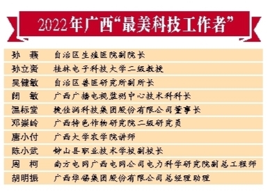 近日,2022年廣西“最美科技工作者”發(fā)布儀式在廣西廣播電視臺(tái)舉行,對(duì)廣西“最美科技工作者”進(jìn)行表彰,并向社會(huì)發(fā)布“最美科技工作者”的先進(jìn)事跡。