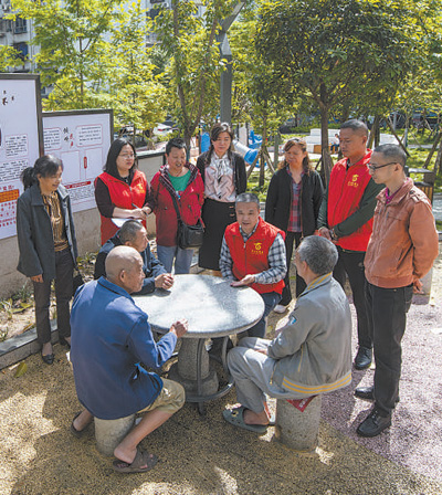 辦法,在一次次走訪(fǎng)中商議出來(lái)。2019年5月,萬(wàn)安社區(qū)開(kāi)始推行樓棟工作日機(jī)制,社區(qū)干部、中關(guān)園小區(qū)樓棟長(zhǎng)堅(jiān)持入戶(hù)走訪(fǎng),幾位“有意見(jiàn)”的老黨員、老住戶(hù)是重點(diǎn)走訪(fǎng)對(duì)象。幾番走訪(fǎng)交流下來(lái),萬(wàn)安社區(qū)黨委書(shū)記、居委會(huì)主任姜正國(guó)頗受觸動(dòng):“這些老黨員、老住戶(hù)有情緒,但更有熱情、熱心,關(guān)心小區(qū)發(fā)展。為什么不把他們調(diào)動(dòng)起來(lái)參與小區(qū)治理?這也符合樓棟工作日的要求,帶動(dòng)社區(qū)居民等多元力量參與,引導(dǎo)社區(qū)居民協(xié)商解決社區(qū)公共事務(wù)。”