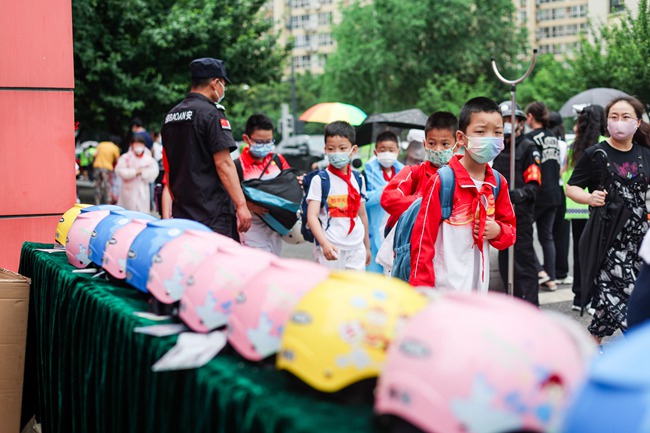 “出門著急了”“忘戴了”“天熱了,戴著麻煩”“不好意思,下次一定戴好頭盔”……5月25日清晨,西安高新交警聯(lián)合高新一小共同行動,開展“一盔一帶”安全守護行動,在校門口教育、提醒騎行送孩子上學而未給孩子佩戴頭盔的家長重視交通出行安全?;顒蝇F(xiàn)場,學校家委會還組織為沒有戴頭盔的孩子贈送了頭盔。當天,高新區(qū)30余所學校安全負責人全程觀摩了此次活動。