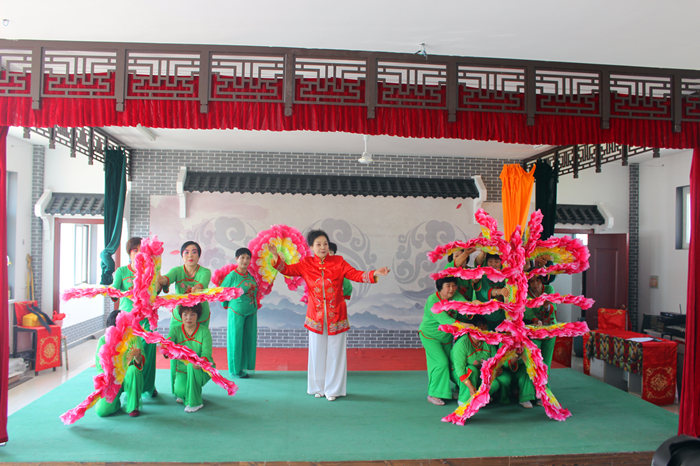 青縣盤古鎮(zhèn)大盤古村愛心小屋的文化志愿者正在為群眾表演文藝節(jié)目。 王笑譜攝