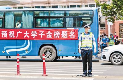 “為保證高考考生順利安全抵達(dá)考點(diǎn),考試期間,我們?cè)诳键c(diǎn)附近安排部署執(zhí)勤警力,并根據(jù)考試時(shí)間提前一個(gè)半小時(shí)到崗到位?!痹谑仪f市第六中學(xué)考點(diǎn)執(zhí)勤的交警告訴記者,考點(diǎn)位于主干路,周邊商超、單位較多,容易出現(xiàn)擁堵,為方便考生,交警根據(jù)車流量情況,對(duì)社會(huì)車輛采取間斷放行等措施進(jìn)行有效分流,避免考點(diǎn)門前路段出現(xiàn)擁堵。