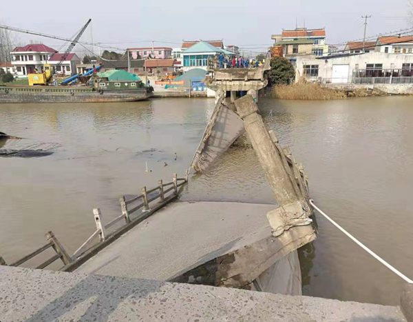橫跨九圩港河的英雄大橋是劉橋鎮(zhèn)群眾出行的重要通道。2021年1月5日,大橋遭貨船撞擊后垮塌,給九圩港河兩岸村民出行帶來(lái)不便。此后,當(dāng)?shù)厝罕娺^(guò)河不得不繞行,近的繞行四五公里,遠(yuǎn)的十來(lái)公里。“孩子們每天上學(xué)放學(xué)都要繞行,遇到惡劣天氣尤為不便?!笔Y一村村民陸漢林說(shuō),大家都盼著重建大橋。