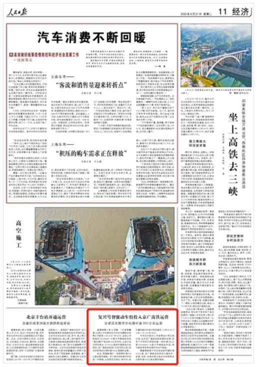 復(fù)興號智能動(dòng)車組投入京廣高鐵運(yùn)營