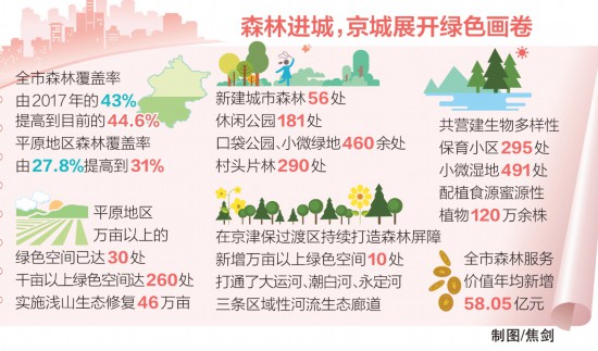 目前,本市森林覆蓋率達(dá)44.6%,平原地區(qū)森林覆蓋率達(dá)31%?!笆澜缂?jí)大城市的理想森林覆蓋率約為30%?!眹?guó)家林業(yè)和草原局城市森林研究中心首席專(zhuān)家王成說(shuō),“北京已經(jīng)在短時(shí)間內(nèi)補(bǔ)齊了生態(tài)資源總量短板,這在全世界都是史無(wú)前例的?!?/p>