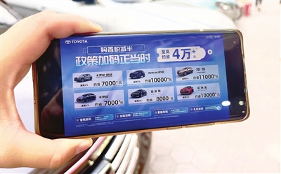 采訪中,多家4S店的銷售人員表示,最近看車的人很多,大家都在問購置稅減半的問題。銷售人員指著一輛卡羅拉向記者介紹,這輛車廠家指導(dǎo)價(jià)為12.78萬元,其中購置稅原本要1.3萬元左右,現(xiàn)在客戶只需要交6500元左右。同時最近還有數(shù)字人民幣相關(guān)推廣活動,預(yù)計(jì)可以再優(yōu)惠2000多元,加上廠商優(yōu)惠,總體算下來花費(fèi)約11萬元。