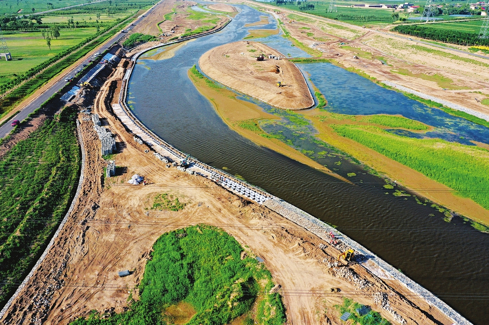 7月5日,正在建設中的汾河百公里中游示范區(qū)清徐段堤內(nèi)工程,航拍鏡頭里,湖心島已呈現(xiàn)美麗的弧線。清徐段工程治理范圍北起汾河二壩,南至清徐文水縣界,長17.7公里,主要工程內(nèi)容包括水利工程和景觀綠化工程,計劃今年9月底完工。承擔施工的中鐵十七局集團五公司項目部,正掀起為期45天的勞動競賽施工高潮。項目的建設,為推動汾河流域生態(tài)保護與修復,滿足兩岸防洪安全、改善河道環(huán)境,形成百公里水利長廊、生態(tài)長廊、文旅長廊,最終實現(xiàn)汾河風光美起來發(fā)揮積極作用。 (記者孫榮祥攝)